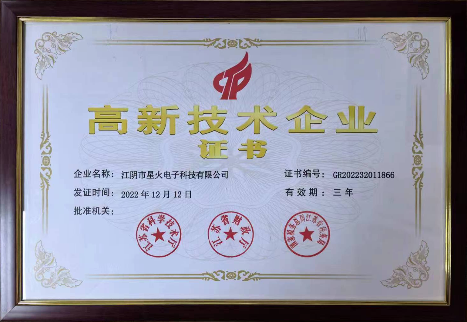 高新技術(shù)企業(yè)證書