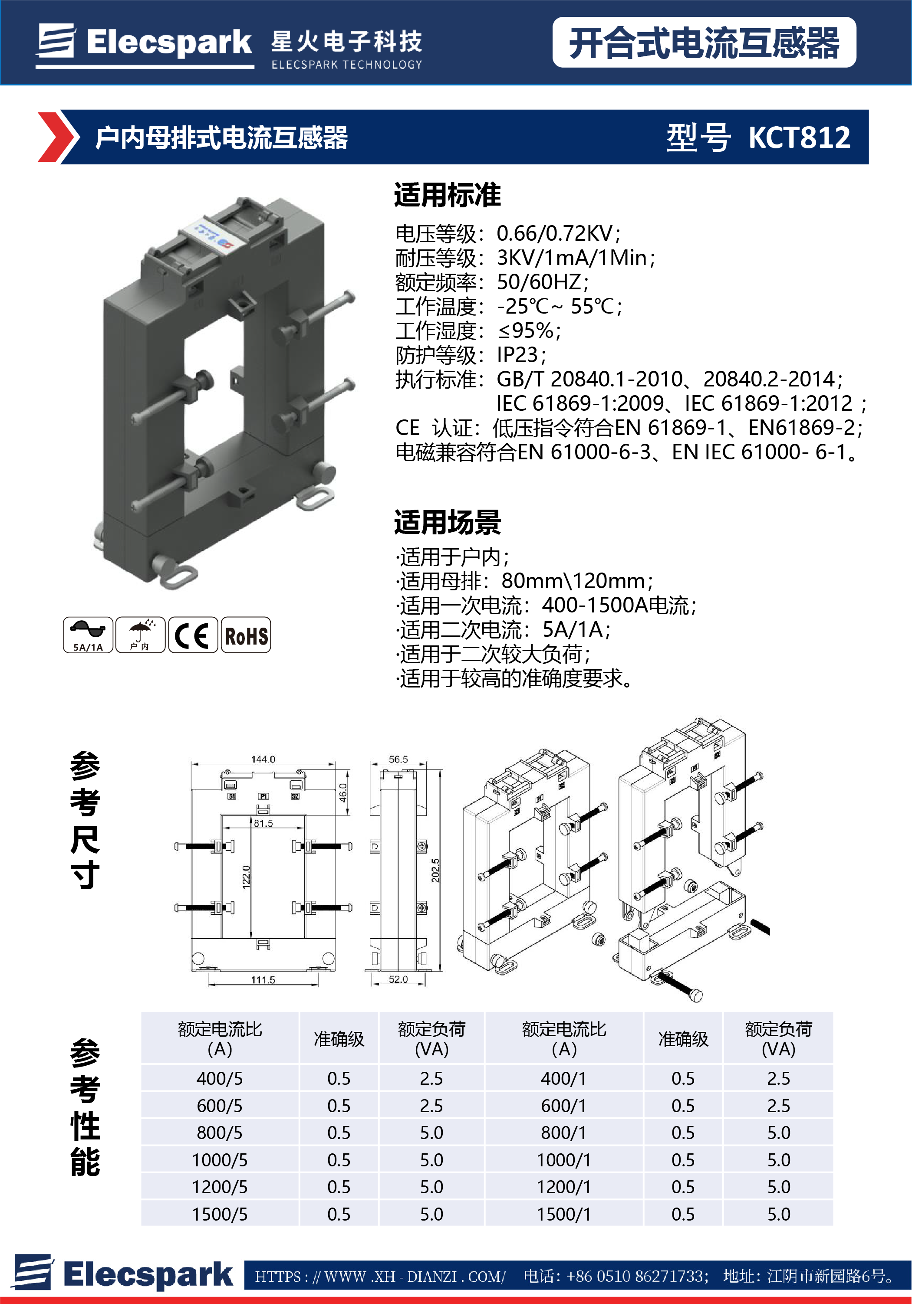 戶內(nèi)母排式電流互感器KCT812